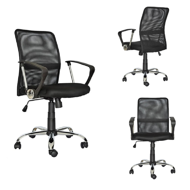 Respaldo y asiento de malla transpirable — ideal para climas cálidos, regulable en altura para adaptarse a cualquier escritorio, ruedas giratorias para máxima movilidad, Diseño elegante y moderno que realza tu espacio, soporte firme con brazos integrados, sistema basculante.